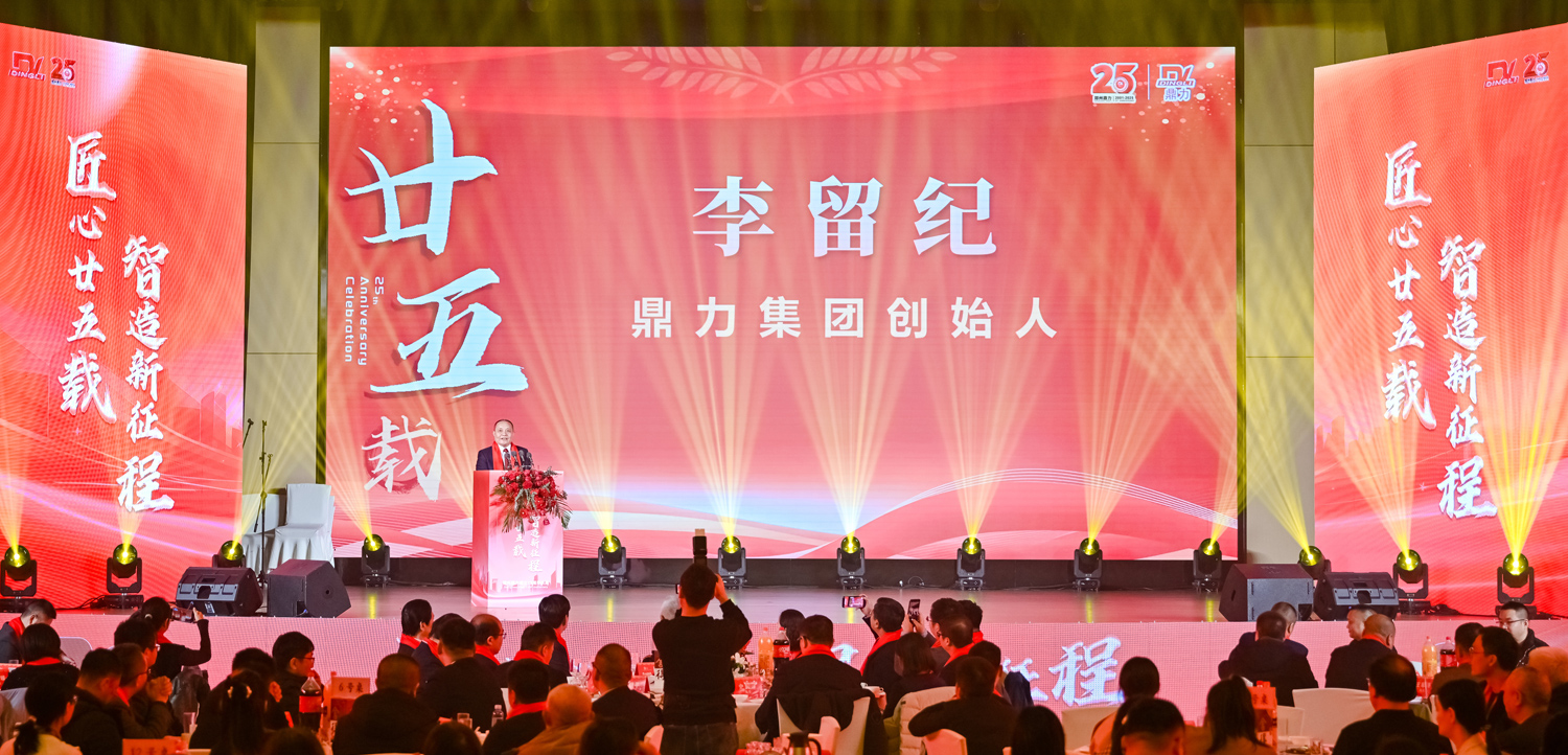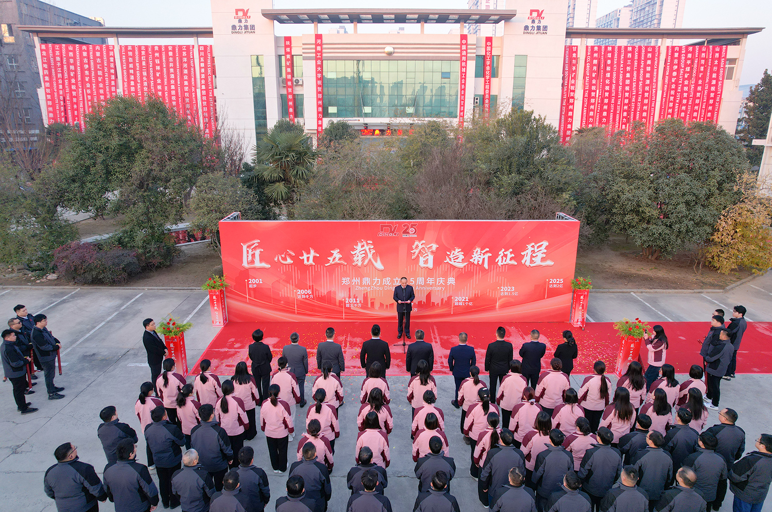 清晨八点,厂区门口旗帜飘扬,全体员工精神抖擞。在礼花与掌声中,25周年庆典仪式正式拉开帷幕。鼎力集团创始人兼董事长李留纪先生发表深情致辞,回顾创业艰辛,感恩时代机遇,寄语未来蓝图。这场简朴而隆重的仪式,点燃了全体鼎力人“再出发”的激情与豪情。